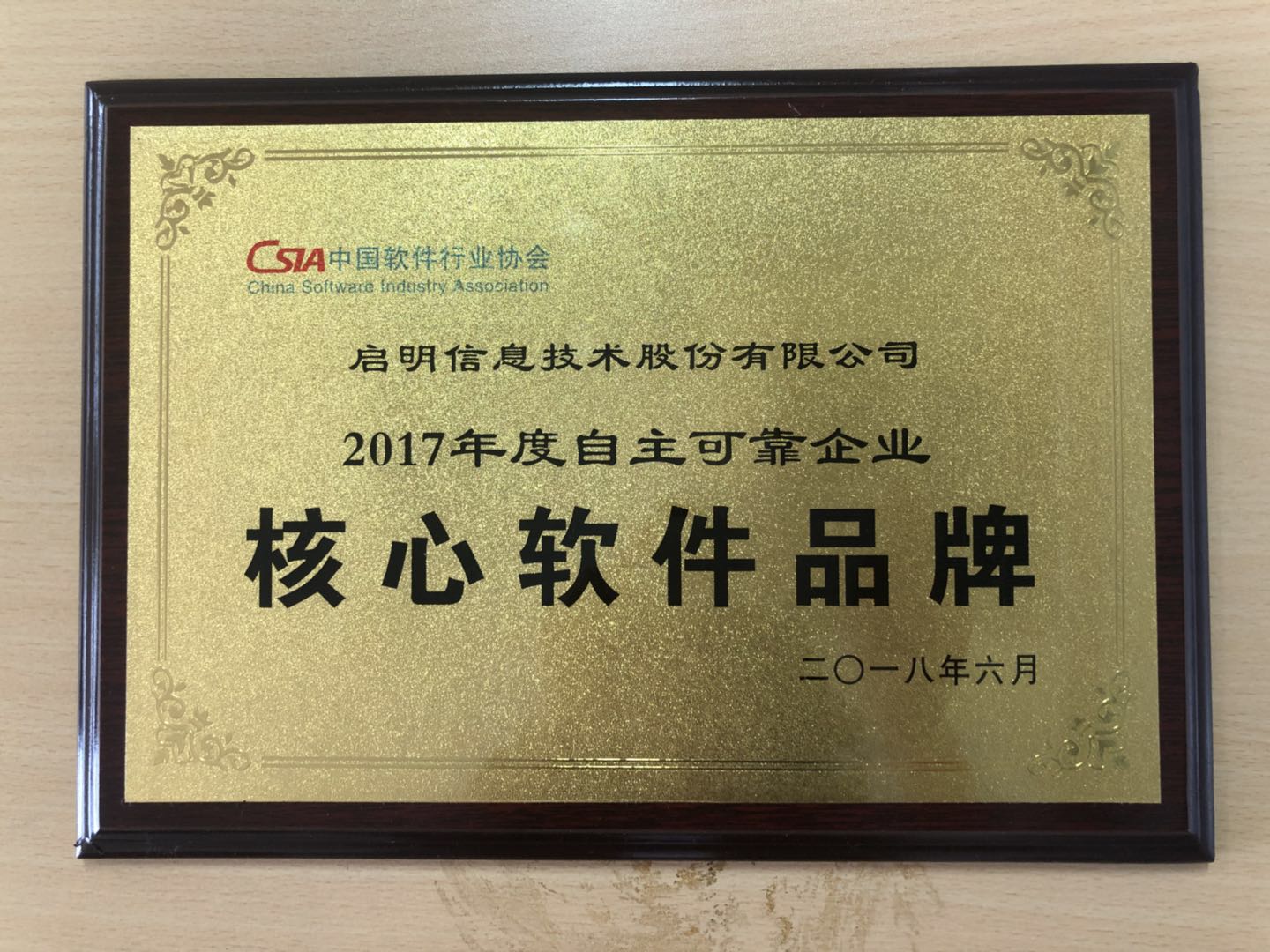 中国自主可靠企业核心软件品牌-2018